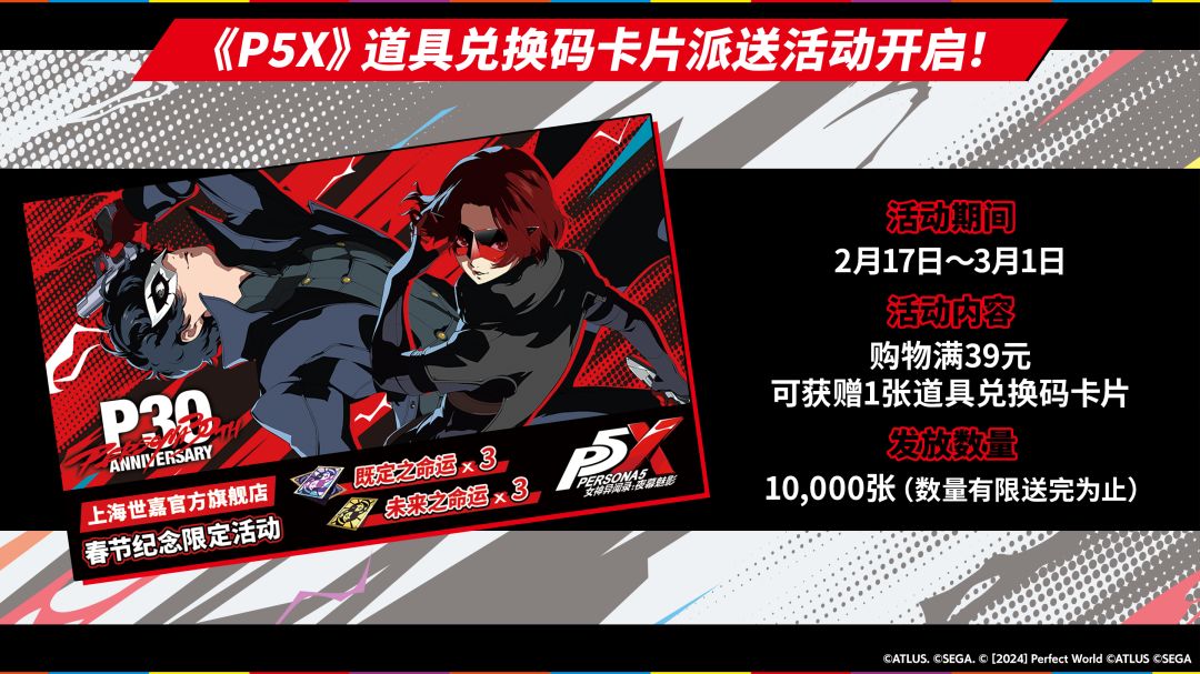 📢SEGA STORE上海将在春节期间免费派发《P5X》道具兑换码卡!