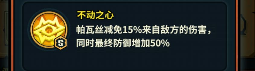 帕瓦丝减免15%来自敌方的伤害,同时最终防御增加50%