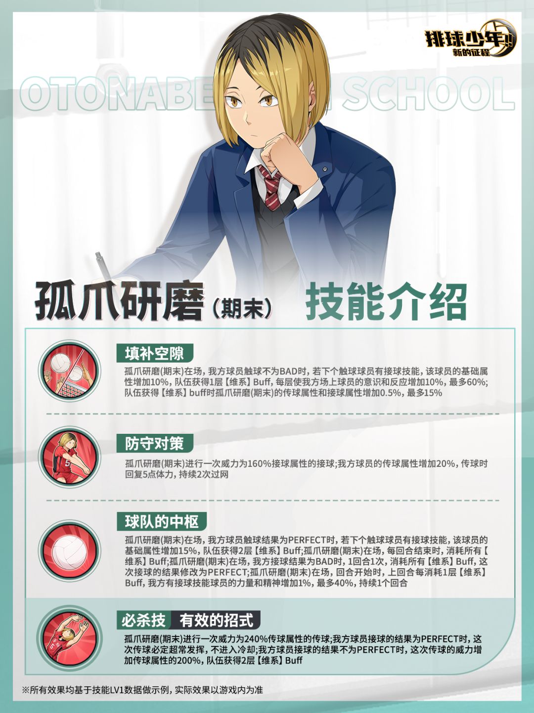 ▶「孤爪研磨-期末(S)」技能、追忆详情欢迎点击图片预览。