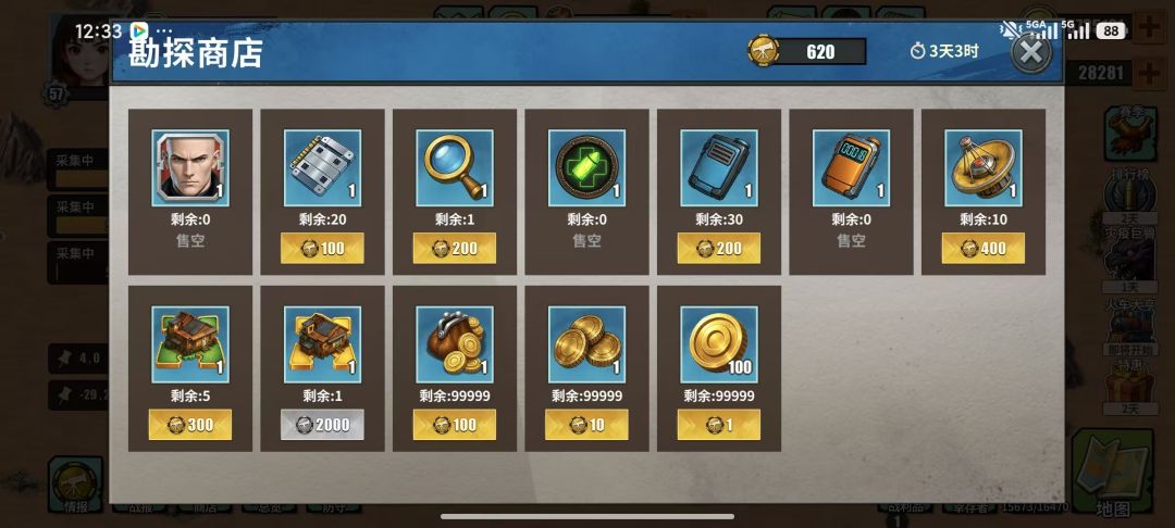 勘探商店优先兑换能量核心、幸存者碎片。这两个换完之后,可以兑换高级电报机、雷达、时空芯片、普通电报机等。占三个8级超市就能把能量核心和幸存者碎片兑换完,占三个9级超市能把绝大部分资源搬空。