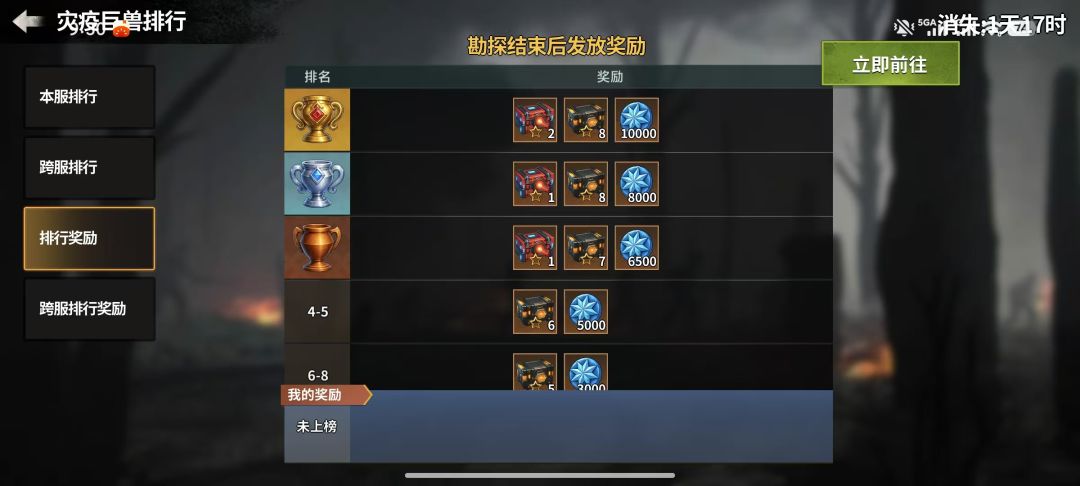 攻打灾疫巨兽能够获取巨兽积分,勘探结束后将根据玩家最高的一次积分来发放排位奖励,能够获取大量的民兵勋章和装备。