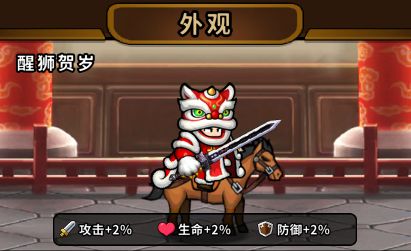 开通游园战令后,立即获得限定主角时装【醒狮贺岁】。