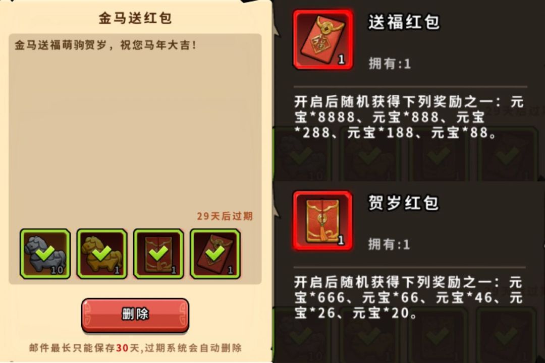 【金马送红包】每日福利邮件,主公可通过查看邮件获得;