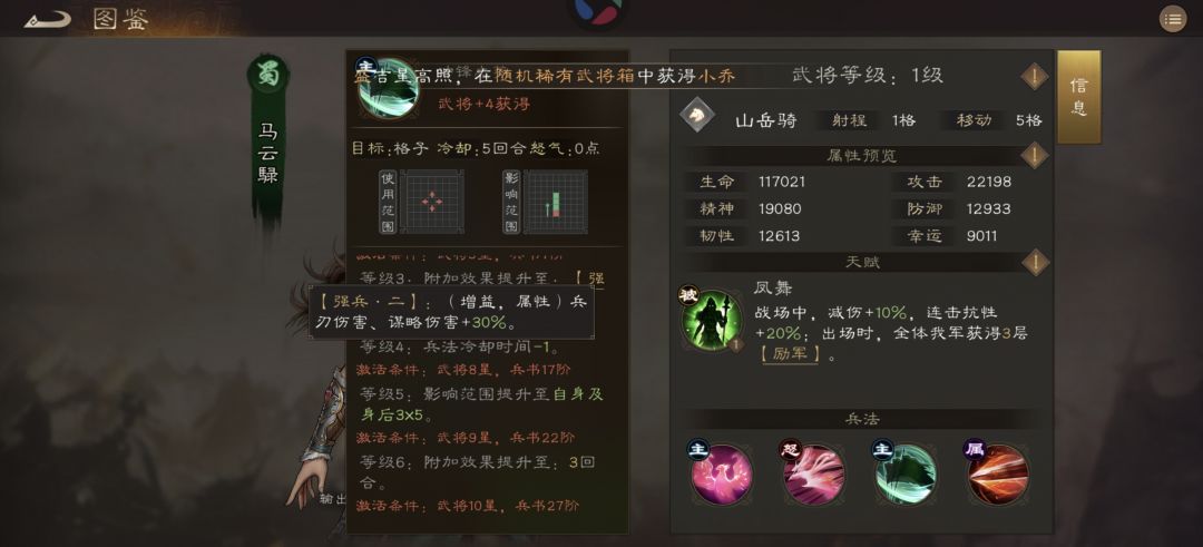 强兵2持续3回合,30%兵伤,谋伤,目前最高辅助!