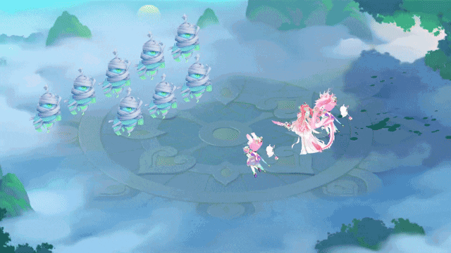 当玄璃·汐海绮嫁释放技能时,整片战场顷刻化作无垠的粉色海洋。粉色的巨龙自云端俯冲而下,龙吟声如潮涌贯穿战场。