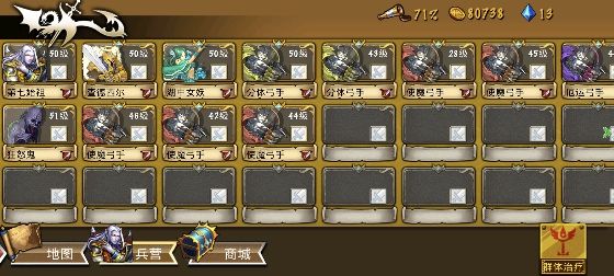 前两图的话 弓团+5远攻的精弓 再配上6速度S的武士基本都挺好过的 弓排可以放左2 利用武士的机动 前可围剿 后可保弓 至于其他位置可以根据情况塞上s防s耐的盾卫 可以配上财富电法刷钱刷钻——当然最好还是s速的财富海神