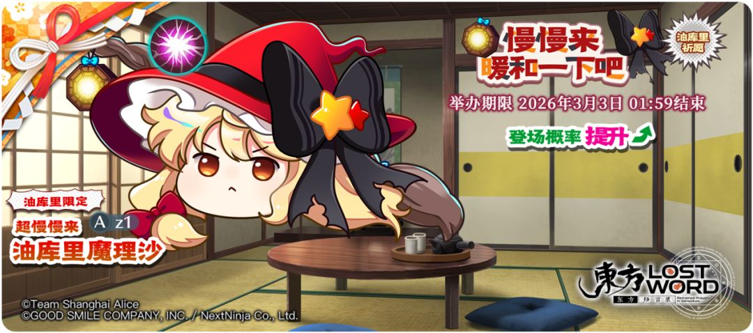 ※预计今后更新的「油库里祝词」中,可低概率获得「超慢慢来 油库里魔理沙(Az1)」。