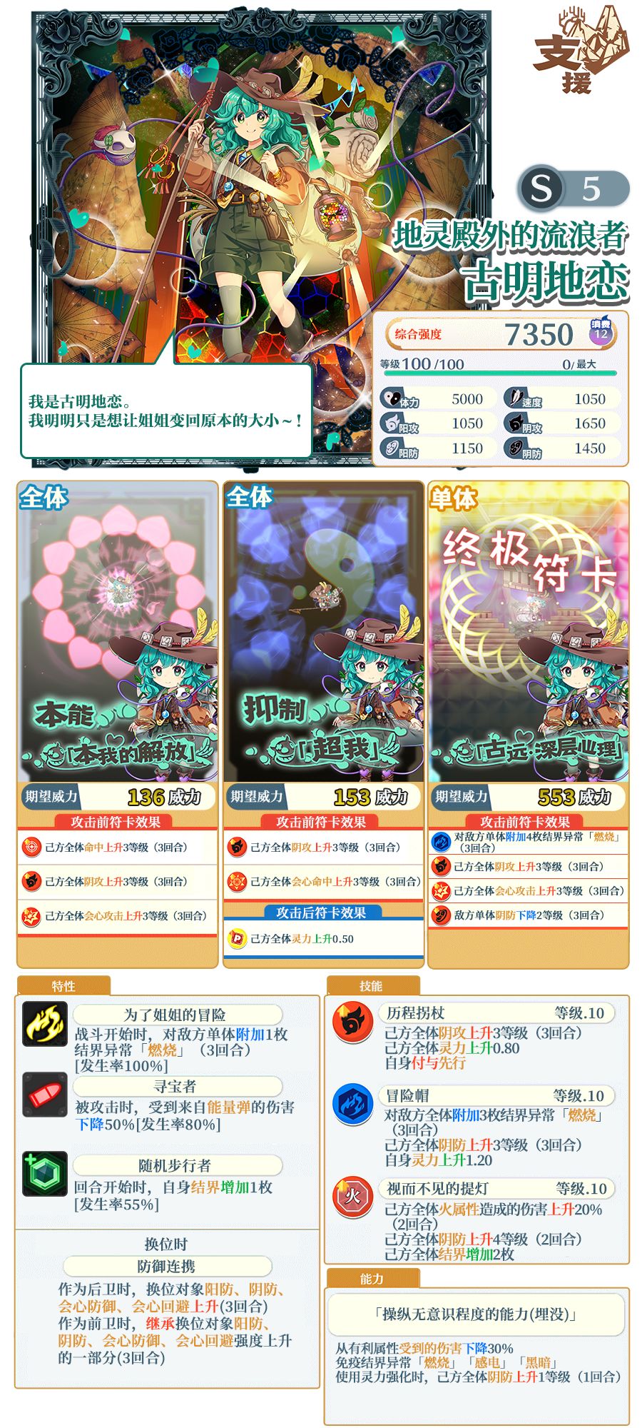 ※「地灵殿外的流浪者 古明地恋」需要使用同名伙伴或者「天之替身」进行界限突破。不同泛异记号的伙伴、「天之替身」以外的替身无法对其进行界限突破。