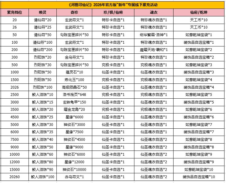 1、以上累充只计算真实充值,代金券部分不计入线下累充档位,游戏内累充档位不影响