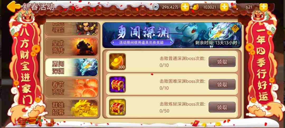 击败普通深渊*10=元宝*300