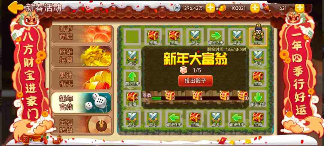 活动内容:活动期间参与新春大富翁活动,累计行动圈数,获取活动奖励。