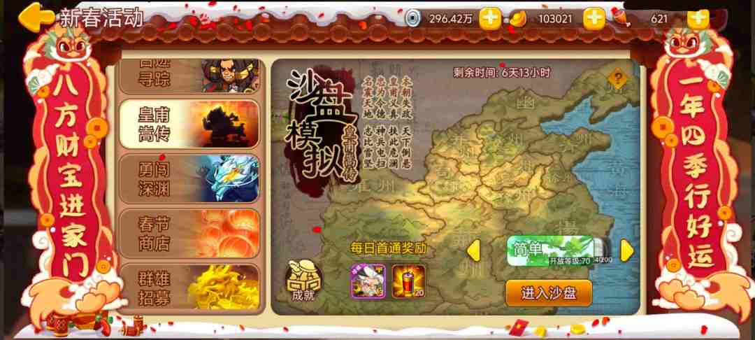 活动内容:活动期间开放“皇甫嵩传”副本,每日首通获得奖励。