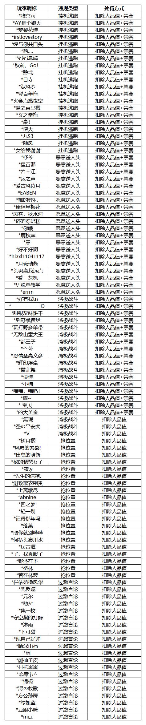 内务组将定期公布部分游戏违规处罚名单,以上为本次公布的存在游戏违规行为的阴阳师大人,还请各位大人引以为戒!