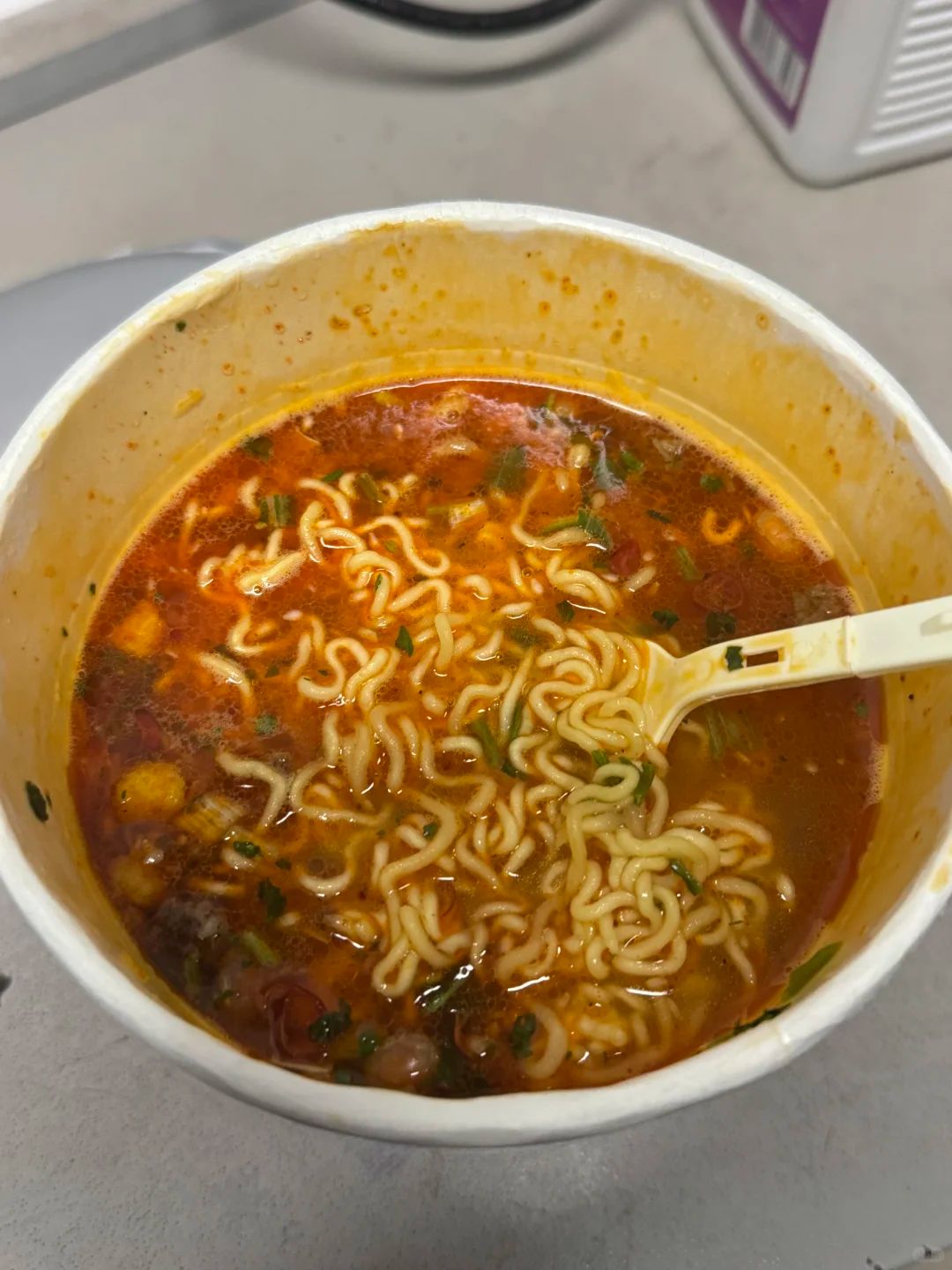 在单位吃泡面,饮水机加热的水有限,根本不够泡一桶面的