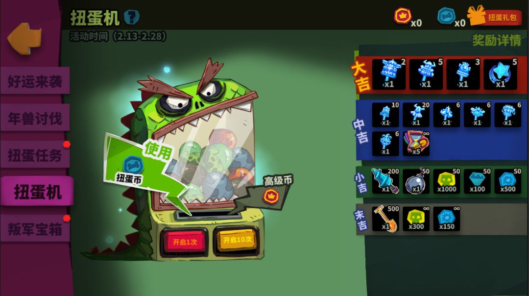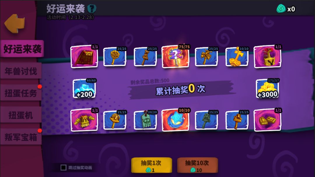 活动期间随着时间推移,7种不同的年兽将陆续解锁,等你挑战!