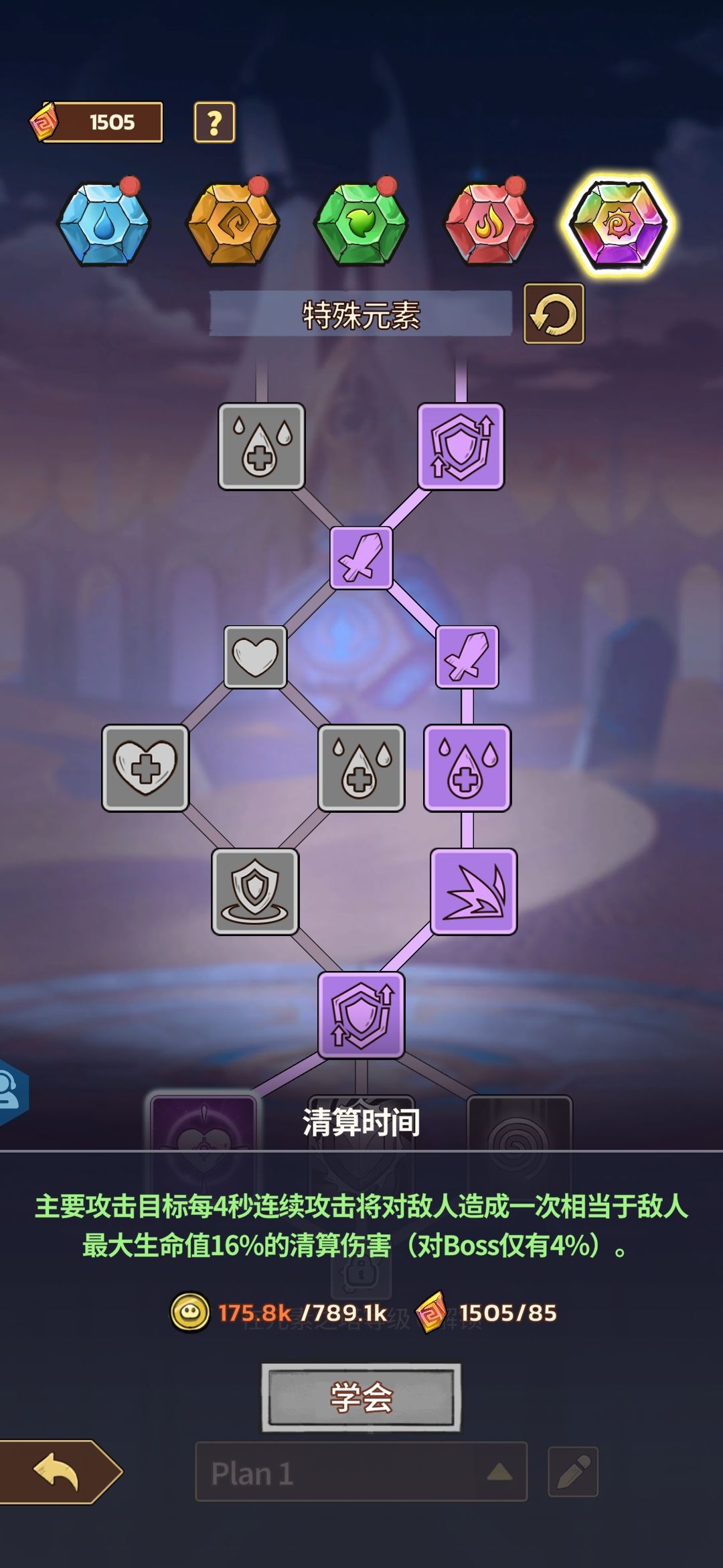 暴击抗性,由于boss的攻击太高,光有血量是过不去的,boss暴击,直接带走,那么暴击抗性的重要性就会提现出来,无论前期和中期,或后期,暴击抗性都是最重要的,尤其到了游戏后期,只是动辄几千k的金币点一次,一次加3点,称之为最牛吸金兽,没有之一!