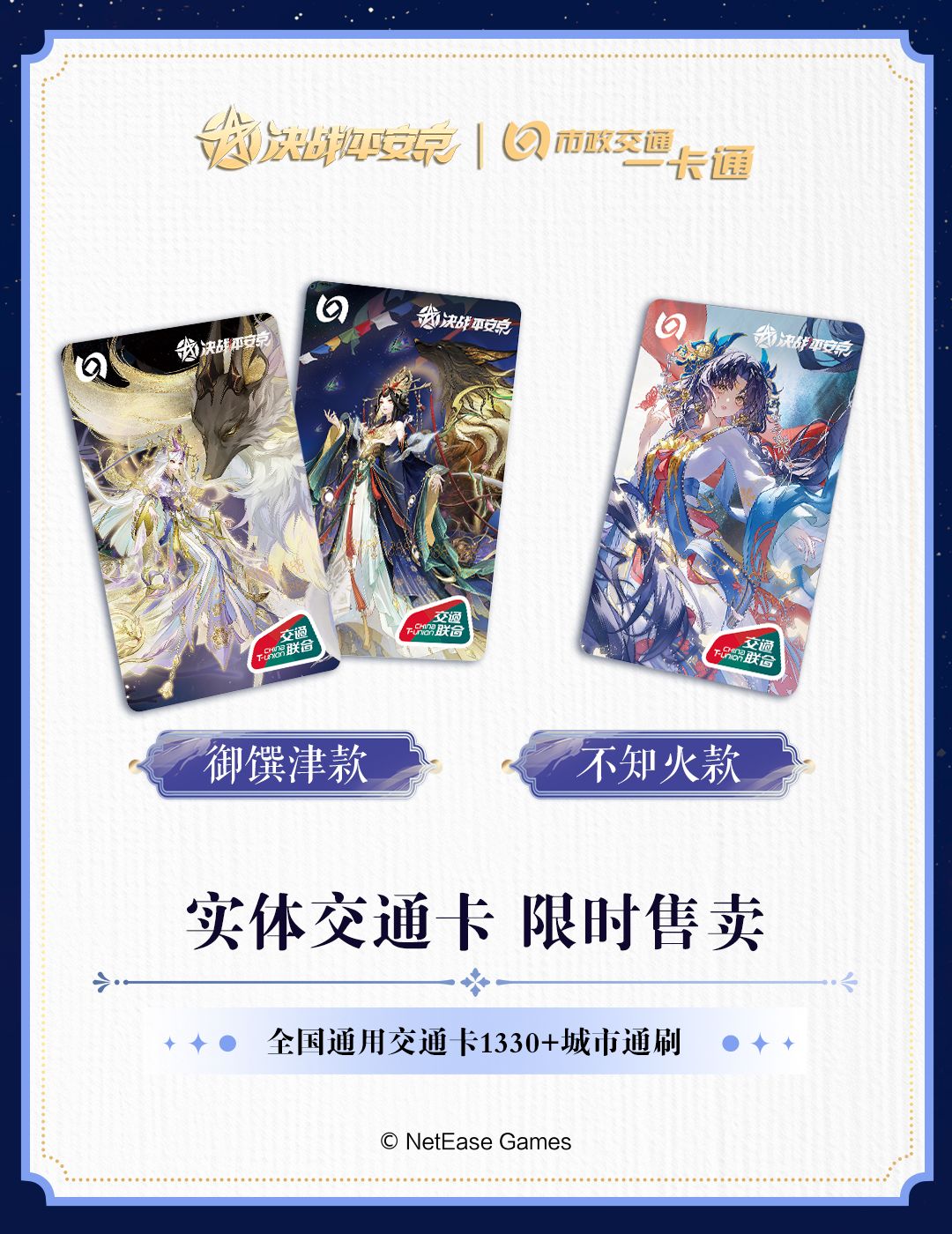 春节将至,平安出行,《决战!平安京》×北京市政交通一卡通 全新式神定制联名卡现已上线!大人们快来与式神崽崽们相伴,遍历山河远阔,尽赏华夏风光吧~