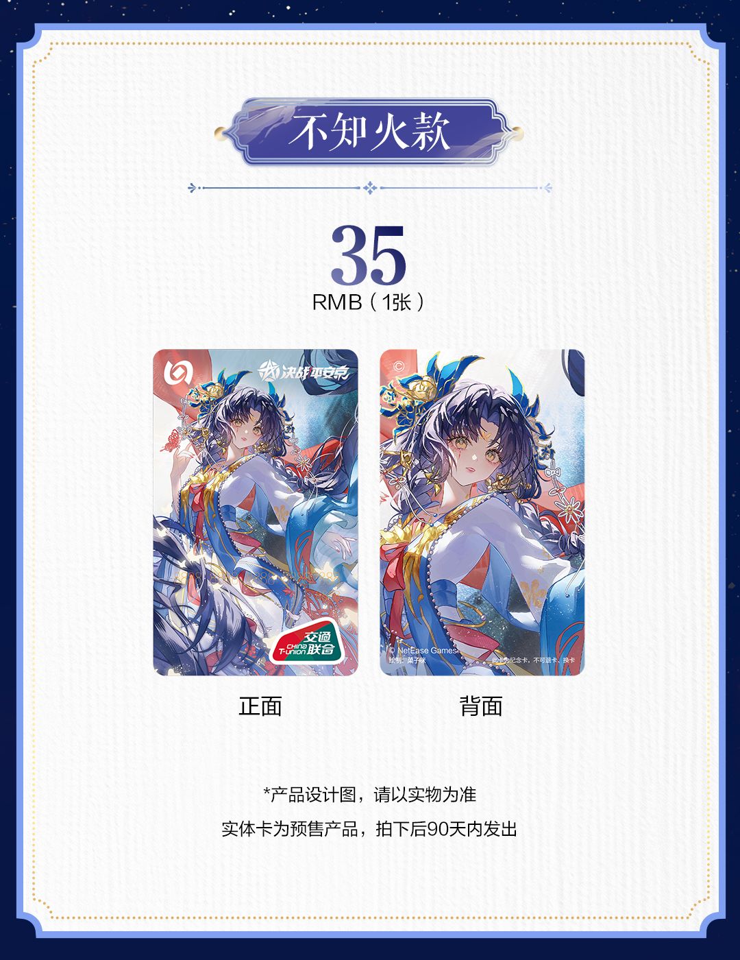 开售说明:实体交通卡为预售产品,将于拍下后90天内发出