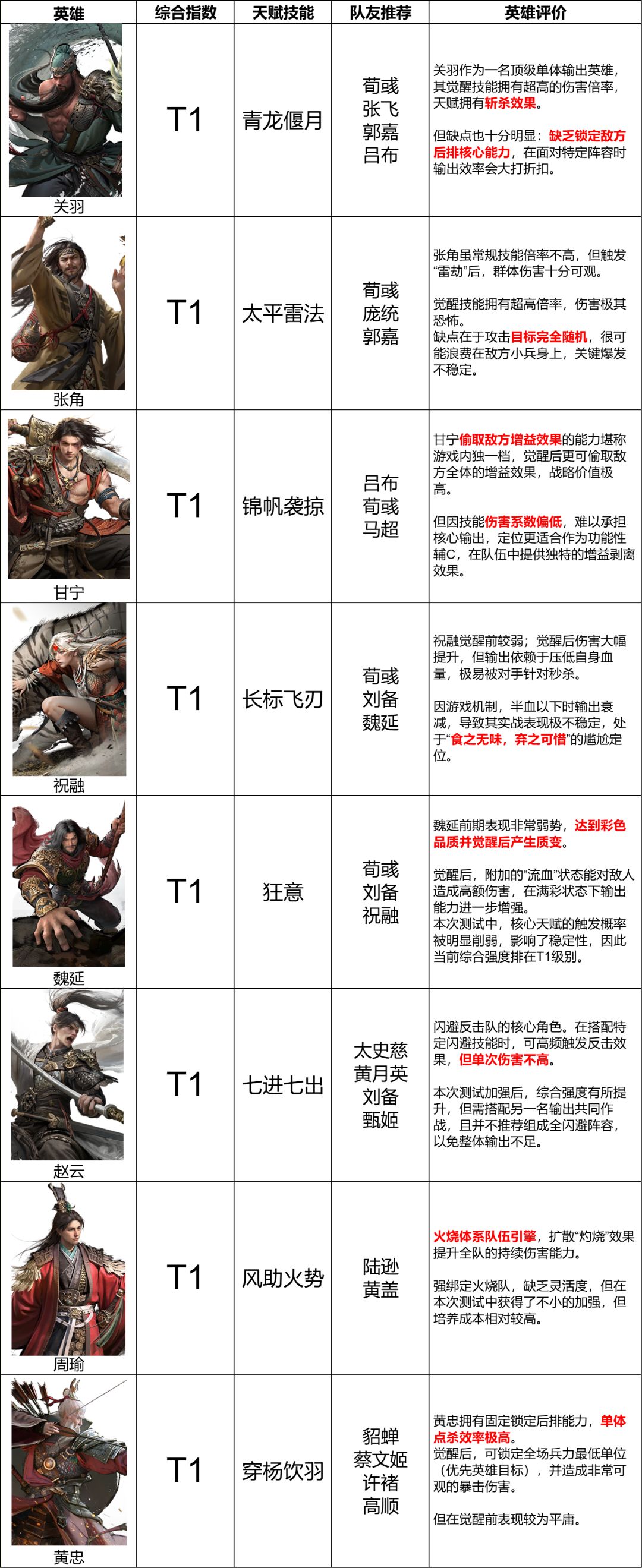 《三国:天下归心》灵感测试输出英雄排行榜