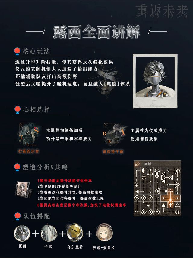 包含核心玩法、心相选择、塑造分析、心相摆放、队伍搭配