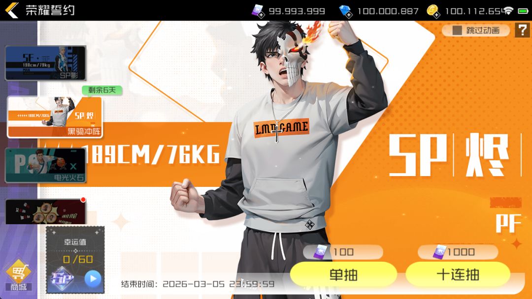 活动内容:SP烁+SP烬复刻加入荣耀誓约,同期开启SP烁+SP烬专属球鞋up活动