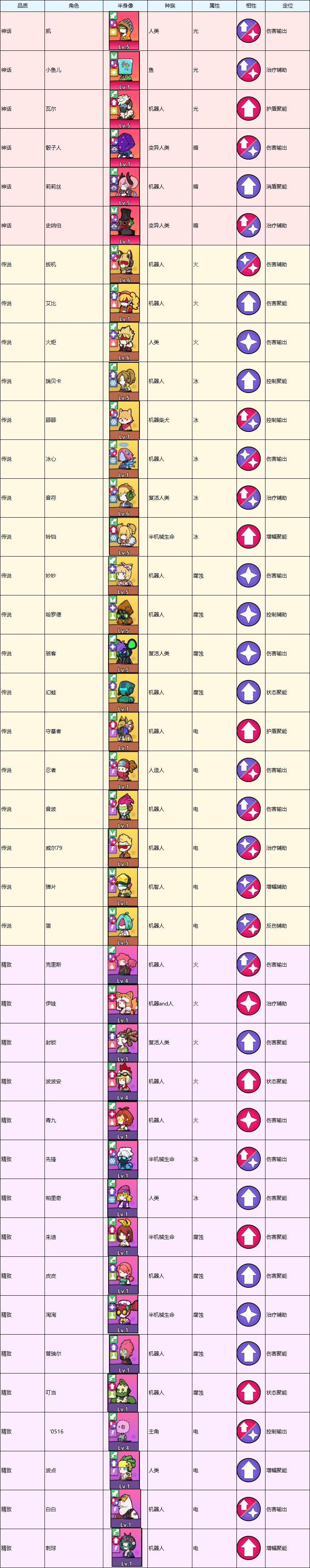 无论是组建日常推图队伍,还是挑战高难副本,都可以随时翻阅这份表格,找到最适合的角色搭配!