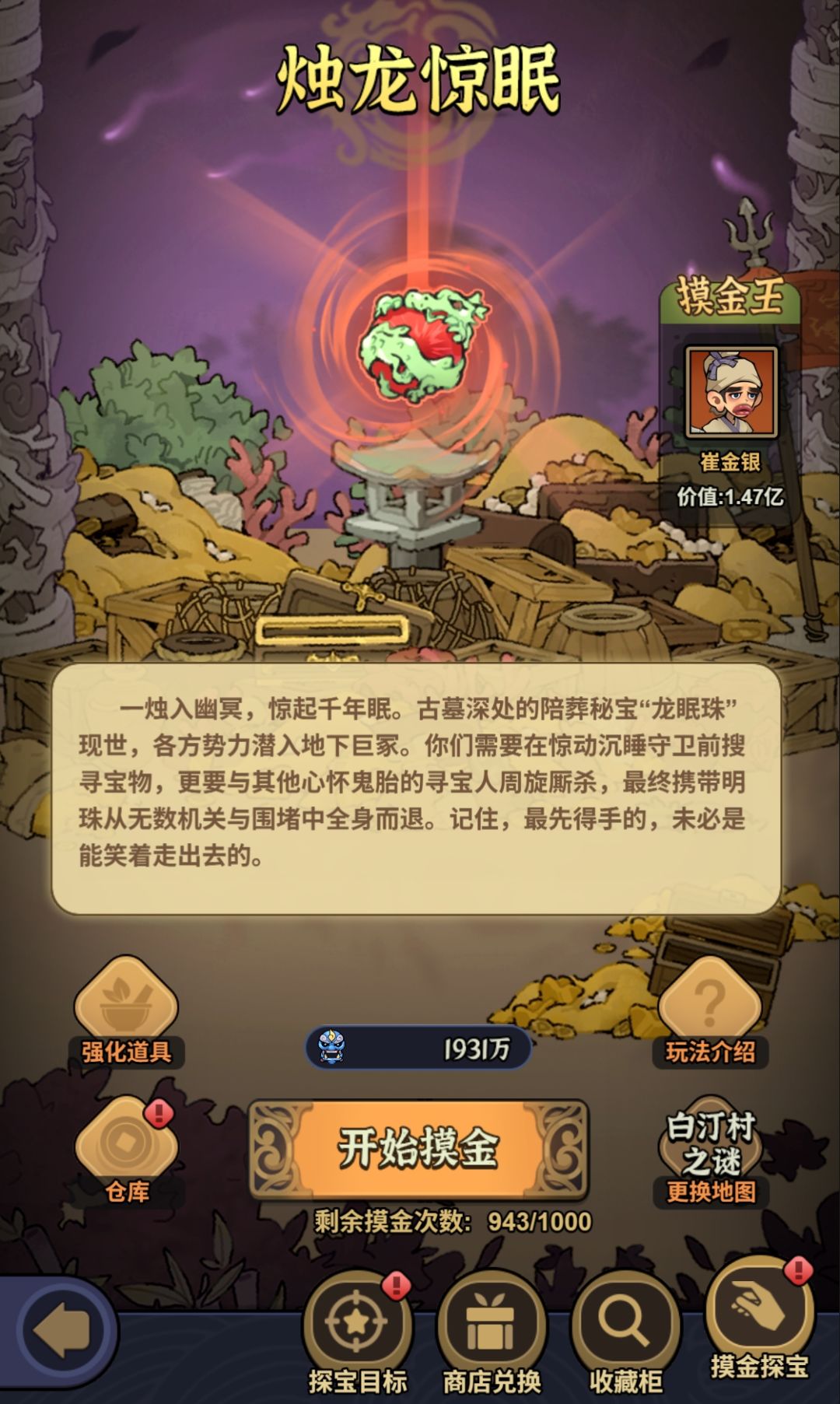 ※【打】——惊龙夺宝:遭遇守墓妖物或与其他玩家狭路相逢时,击败对手可抢夺对方已获得的宝物,但失败者也将掉落全部宝物。