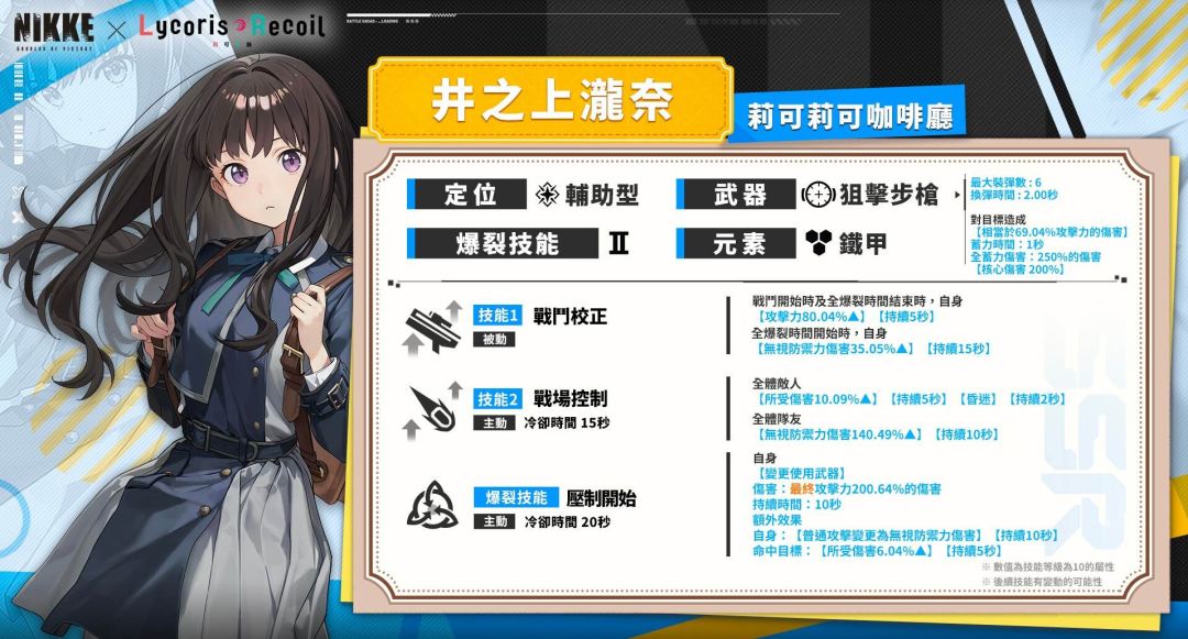 《胜利女神:妮姬》×《Lycoris Recoil 莉可丽丝》联动现已上线。本次上线的三位联动角色:锦木千束(SSR)、井上泷奈(SSR)、胡桃(SR);