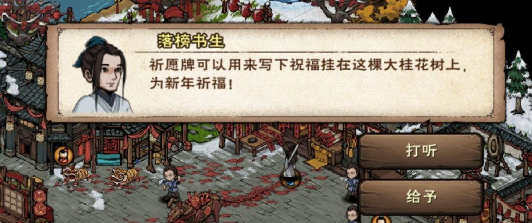 (3)多余的集字,交给落榜书生,可以得到10烟雨钱+一个祈愿牌(祈愿给100烟雨钱)。