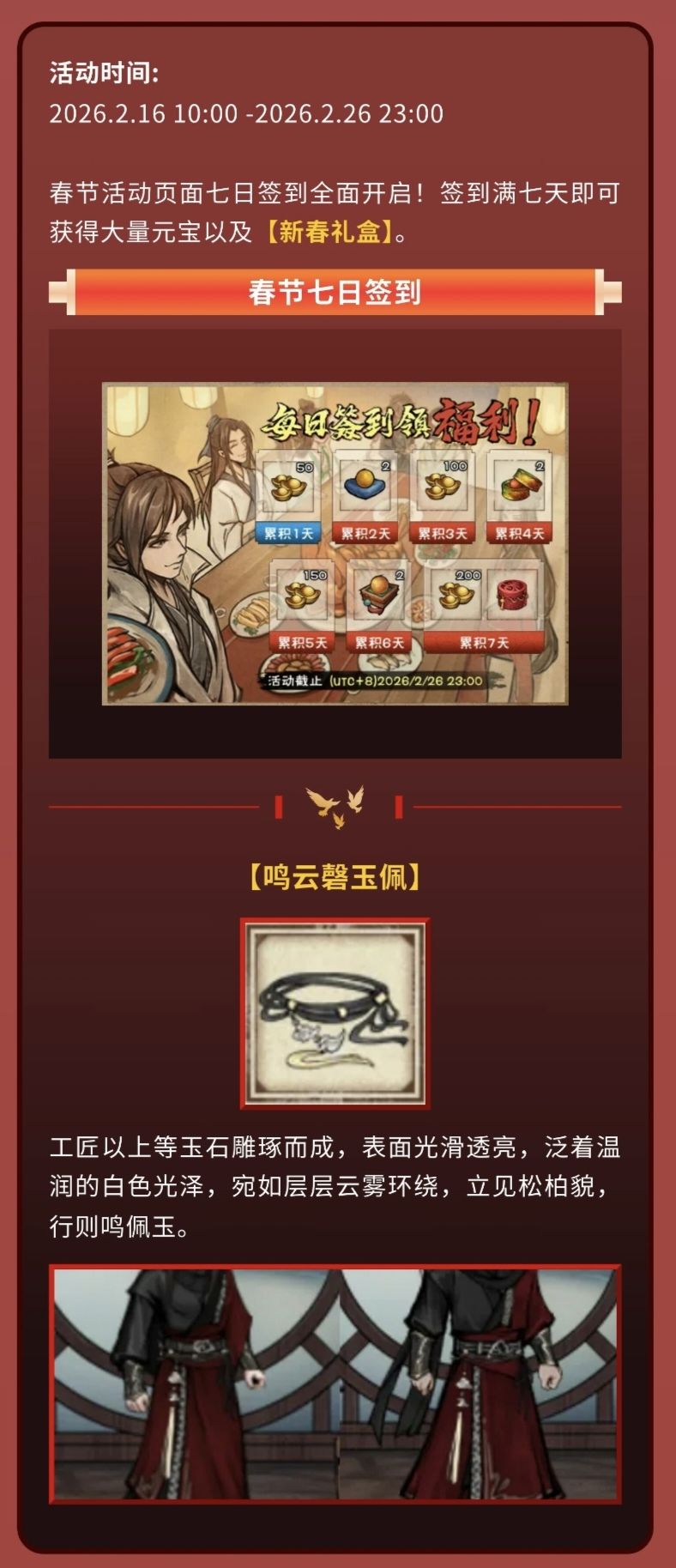 持续七日,明天可额外获得50烟雨钱,以及一些额外的属性以及道具,年年都一样,tap都能搜得到,一样不多说,记得每天做就行![[TapFamily1_嗨嗨]](https://img.tapimg.com/market/images/830652688a2cd5a0be213fd33f635795.gif)
