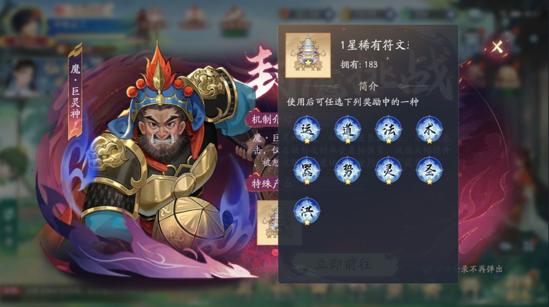 根据封魔挑战魔·巨灵神的特性,建议大家使用带有驱散效果的侠客上场挑战