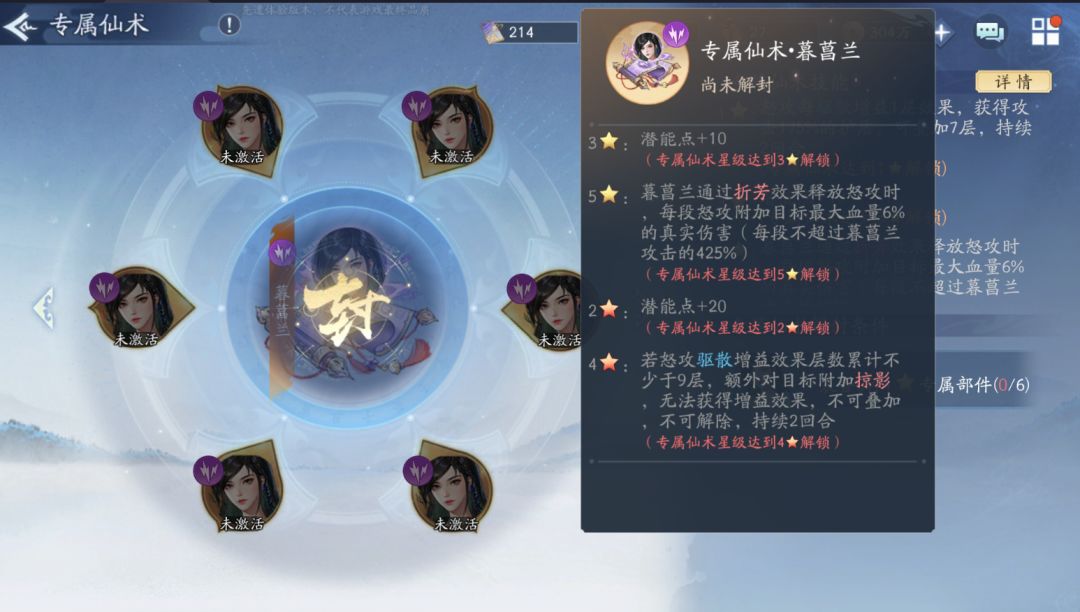 专属7★. :潜能点 + 20(专属仙术达到7★解锁)
