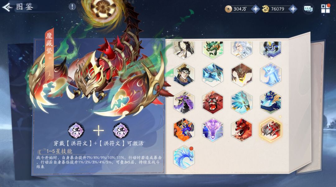 战斗开始时,自身暴击提升7%/8%/9%10%11%,行动时若造成暴击,行动后自身暴伤提升1%/2%/3%/4%/5%,可叠加5层,持续至战斗结束