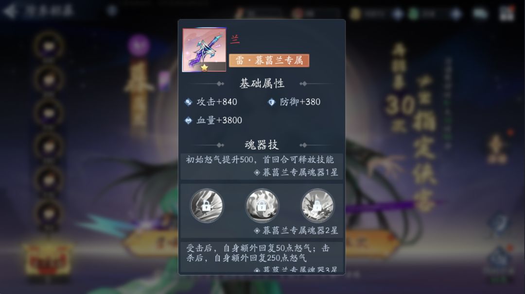 解锁雷珍(敏)侠客——暮菖兰专属魂器——【兰】