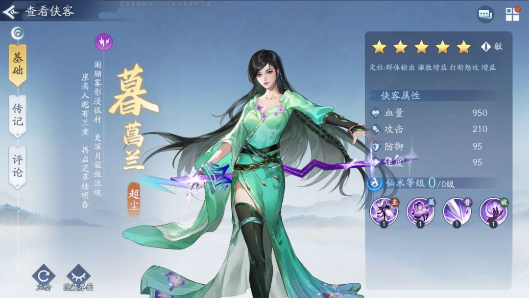 雷珍(敏)侠客——暮菖兰-空谷幽兰招募总面板