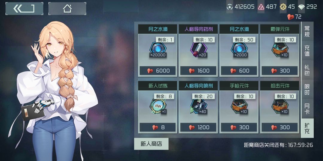 因为爬塔一天就可以结束,所以若是每天刷新就有:0点刷新的两个每日任务+重开后的30层任务+新每日任务。收益远高于等它自动结束。无尽商店(商店也会刷新)里有一堆升格材料啊!!!