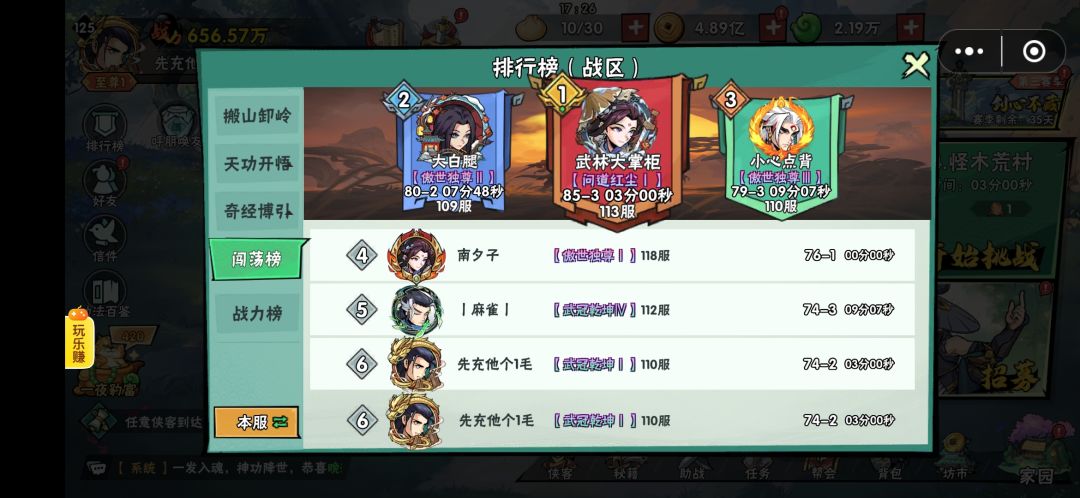 目前推图区里第六,前5都是过千万氪佬。