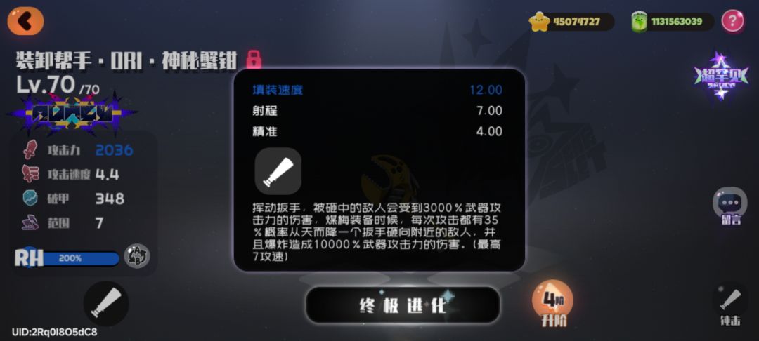 操作:贴脸跟boss打,哪里亮了点哪里,这是一个弹幕游戏啊,记得躲伤害(怎么走位就各显神通了)ps:可以凹一个boss散射星星技能少的局,练度够的话300多亿不是问题