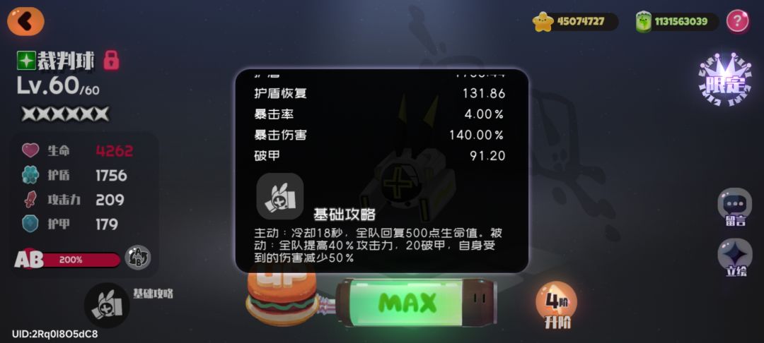 裁判球是游戏里提供攻击力加成第二高的光环宠,且提供的20破甲可以让黑盒使用4阶扳手在叠满被动下的常态攻击破甲大于boss护甲