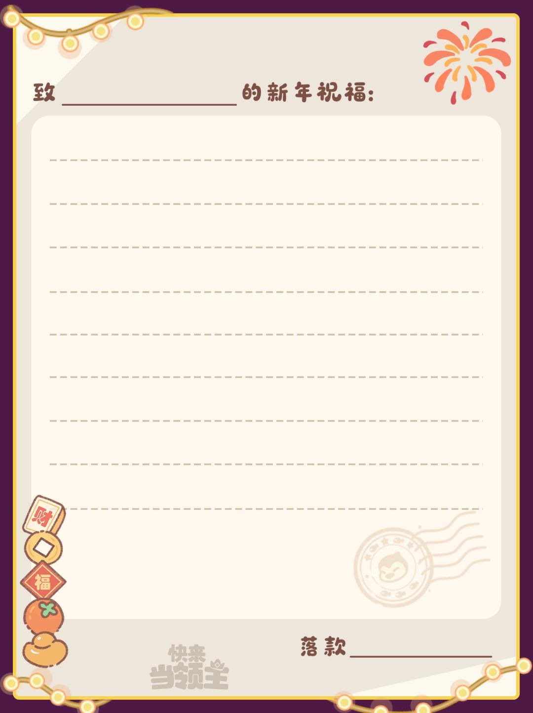 所以悄悄准备了专门的新春信纸,想和领主大人一起,把藏在心里的祝福都写下来~不论是写给雪球的、还是写给小企鹅的、还是写给帅气小企鹅的(bushi),大家都可以把心意好好写在信纸上噢~
