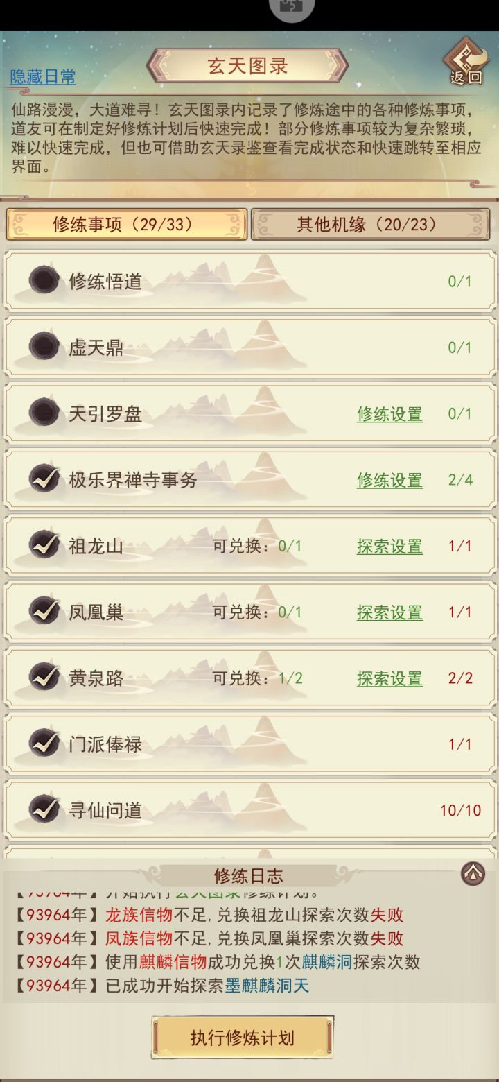 能隐藏的都是不需要隐藏的。实际需要藏的是修炼/战斗悟道,虚天鼎,天引罗盘,极乐界禅寺。正在探索宗门秘境时宗门秘境可以显示为红色。三界机缘应当给一个自动参与的设置项。这样才能真正做到消掉所有提示。