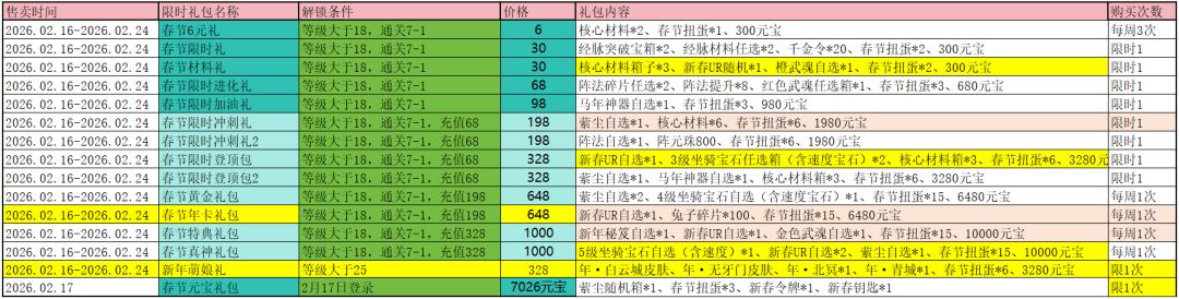 12、超值签到调整(除夕-2月24号)橙剑客调整为新春令牌*1
