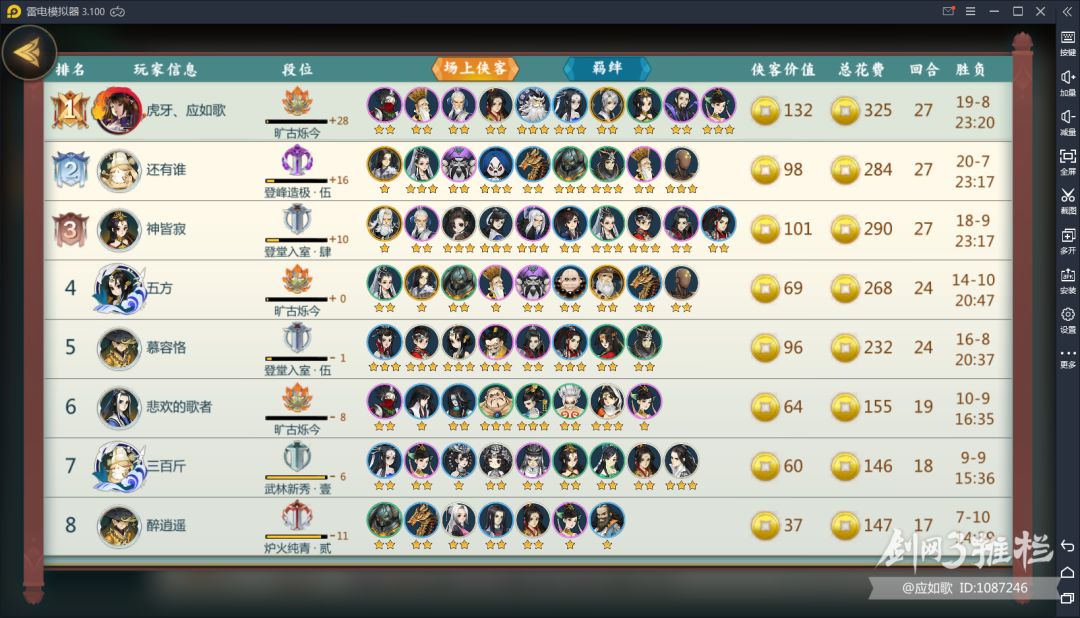 然后8人口以后无情的d牌环节,至于要什么卡看你喜好,我是四秀+东方宇轩,沈剑心,李忘生,玄正,姬别情,艾黎。