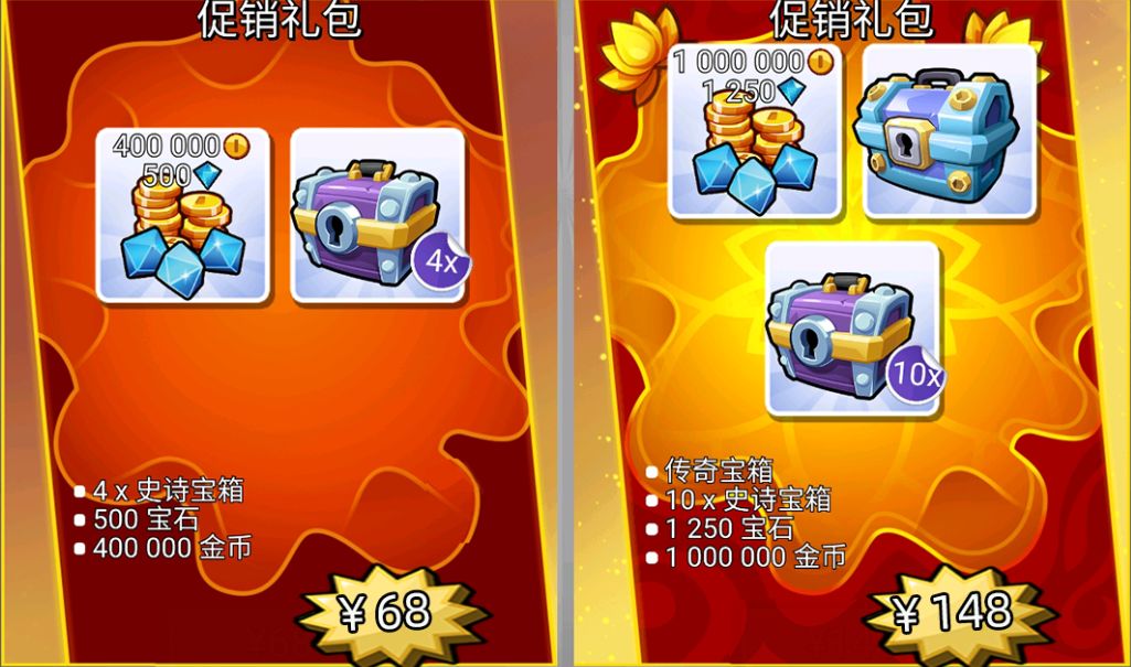 礼包内容:传奇宝箱、史诗宝箱、宝石、金币