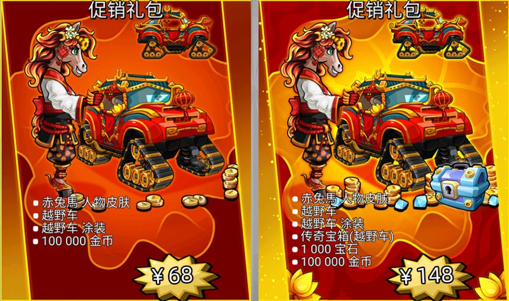 礼包内容:赤兔馬、越野车、越野车 涂装、传奇宝箱(越野车)、宝石、金币