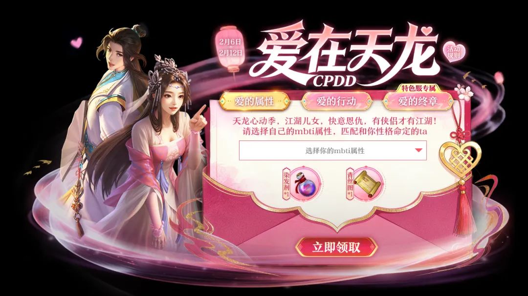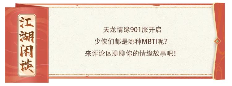 开服当天,各位少侠即可参与【爱的属性】专属活动,填写你的MBTI人格类型就好!