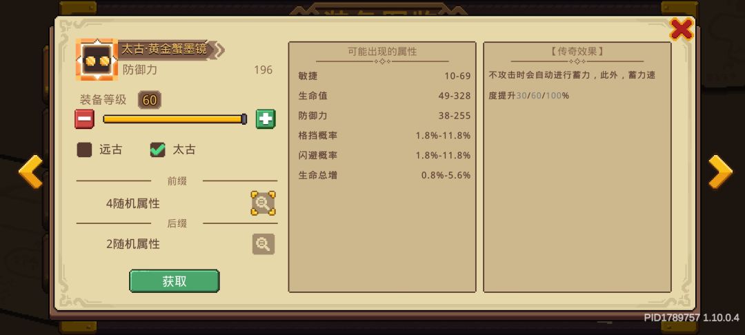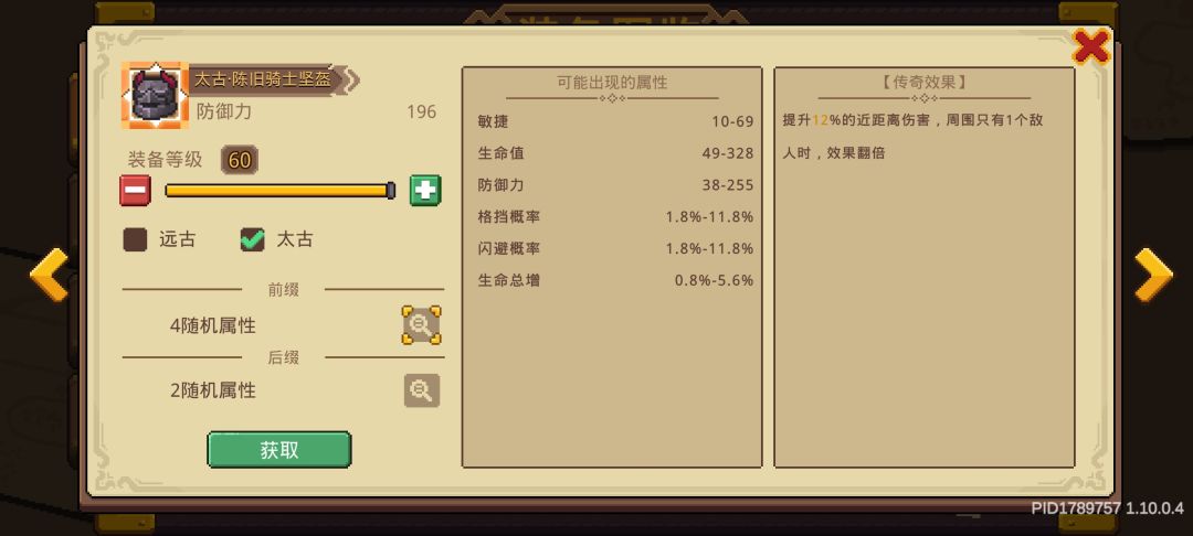帽子选择很多,前期过渡用主教礼冠,后期走近距离伤害用陈旧骑士,用蓄势待发就用黄金🦀,后缀词条必带无视防御,锻造主要凑无视防御,如果不追求爬塔洗个红冠剩下金冠就拿也行,想加点伤害就拿敏捷。