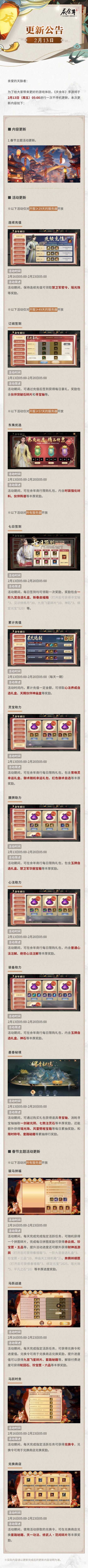 为了给大家带来更好的游戏体验,《庆余年》手游将于2月13日(周五)05:00进行一次不停机更新,本次更新内容如下
