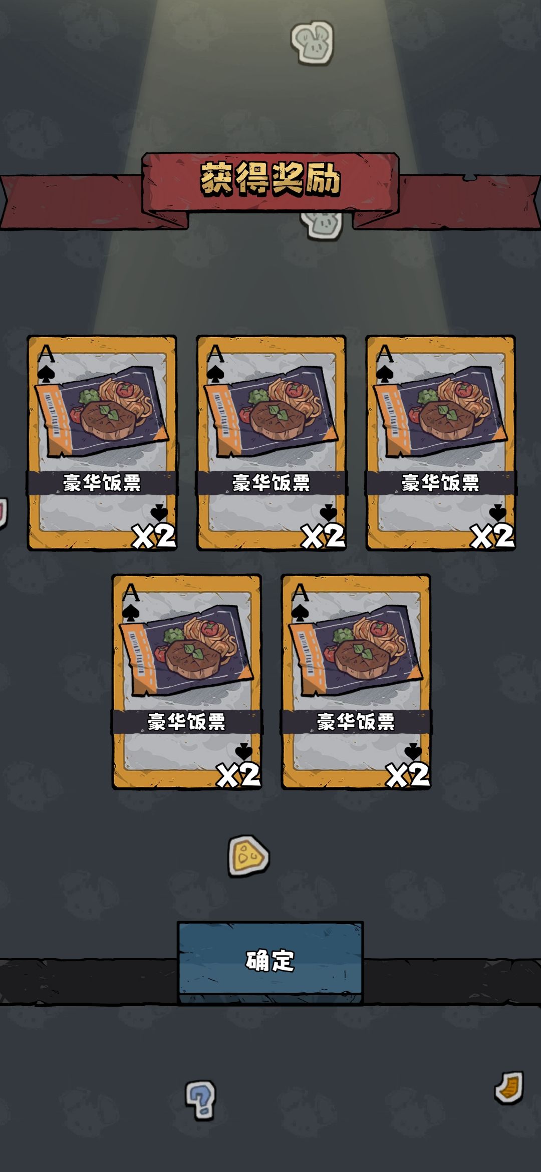 操作一:重点是这个紫餐票,没有暗鸦开局就基本没有欧皇的可能性,用暗鸦还能做任务,投入5000金币,达成上面条件基本必出一个5连紫餐票再欧皇卡翻倍,除非你黑的很。多出几次就差不多了,紫餐票抽出2张及以上就可以翻倍用了,抽出2张豪华饭票1张紫餐票也可以翻倍,因为股市初始资金也需要。