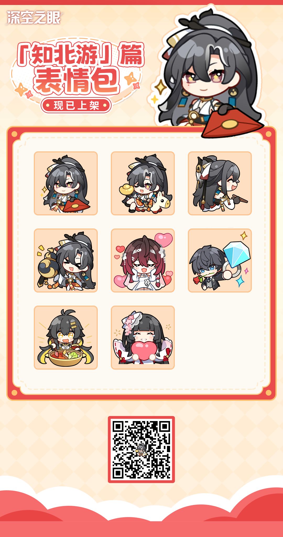 《深空之眼》「知北游」表情包现已上架微信表情商城!管理员使用微信扫描识别下图二维码或在微信表情商城搜索【深空之眼】,即可下载微信表情包啦(✪ω✪)
